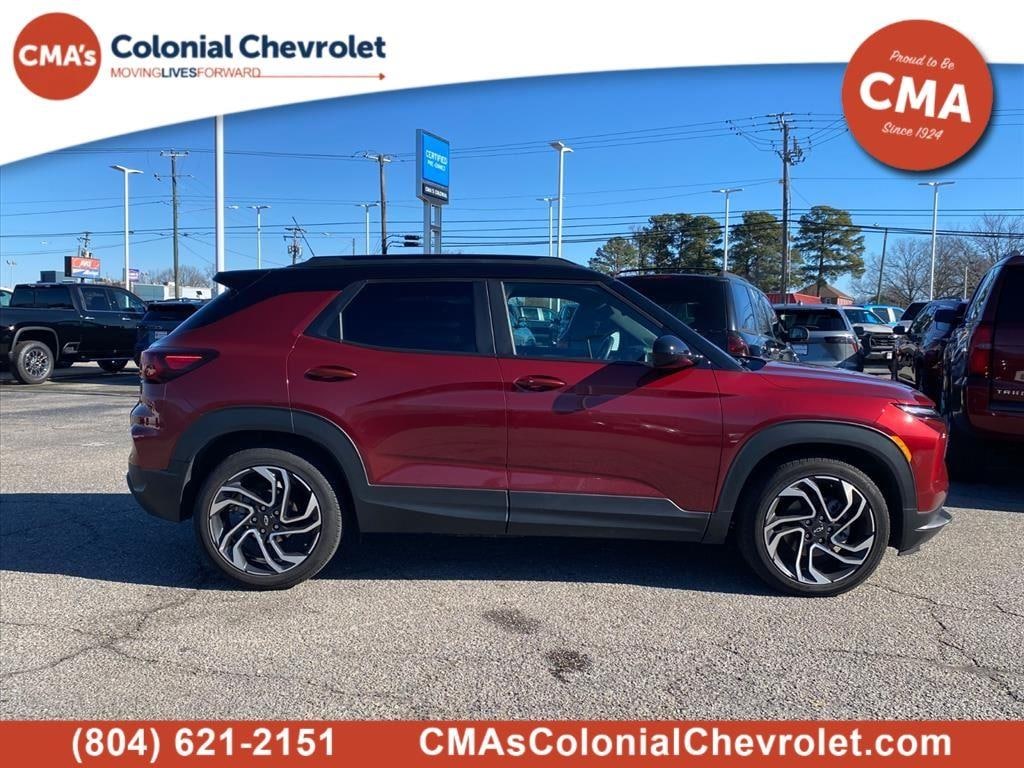 EMISSIONS, COLORADO, CONNECTICUT, DELAWARE, MAINE, MARYLAND, MASSACHUSETTS, MINNESOTA, NEVADA, NEW JERSEY, NEW YORK, OREGON, PENNSYLVANIA, RHODE ISLAND, VERMONT, VIRGINIA AND WASHINGTON STATE REQUIREMENTS, EMISSIONS OVERRIDE, FEDERAL, ENGINE, ECOTEC 1.3L I3 TURBO DOHC SIDI WITH VARIABLE VALVE TIMING (VVT), TRANSMISSION, CONTINUOUSLY VARIABLE (CVT), AXLE, 5.45 FINAL DRIVE RATIO, WHEELS, 19 (48.3 CM) HIGH GLOSS BLACK MACHINED ALUMINUM, CRIMSON METALLIC, MOSAIC BLACK METALLIC TWO-TONE ROOF, SEATS, FRONT BUCKET, JET BLACK WITH RED ACCENTS, EVOTEX SEAT TRIM, AUDIO SYSTEM, 11 DIAGONAL HD COLOR TOUCHSCREEN, AM/FM STEREO., CONVENIENCE PACKAGE, DRIVER CONFIDENCE PACKAGE, SUNROOF, POWER, DUAL-PANE, PANORAMIC, LIFTGATE, POWER PROGRAMMABLE, HANDS FREE WITH LED LOGO PROJECTION, LICENSE PLATE BRACKET, FRONT, POWER OUTLET, 120-VOLT, USB CHARGING-ONLY PORTS, WIRELESS CHARGING, LPO, ALL-WEATHER FLOOR LINERS, FRONT AND REAR, AIR CONDITIONING, SINGLE-ZONE AUTOMATIC CLIMATE CONTROL, SENSOR, CABIN HUMIDITY, MIRROR, INSIDE REARVIEW AUTO-DIMMING, VISORS, DRIVER AND FRONT PASSENGER ILLUMINATED VANITY MIRRORS, COVERED, SLIDING, REAR PARK ASSIST, REAR CROSS TRAFFIC ALERT, LANE CHANGE ALERT WITH SIDE BLIND ZONE ALERT Come on in to CMA's Colonial Chevrolet today at 12420 Route 1 Chester VA 23831 or call to schedule a test drive!